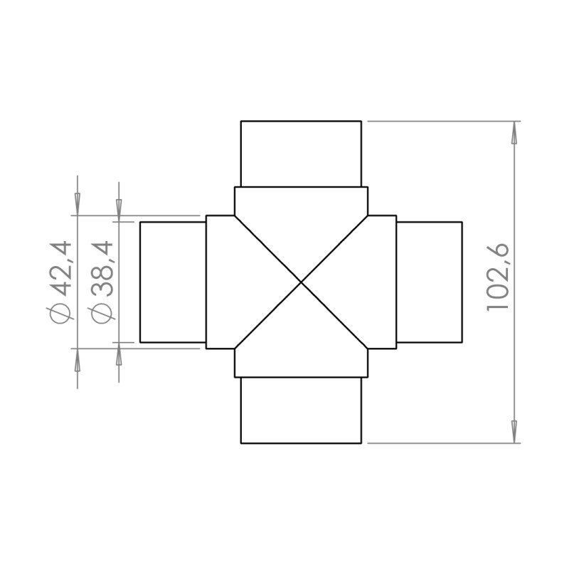 spojka - prechod, krížový kus na trubku ø 42.4mm, brúsená nerez K320 /AISI304