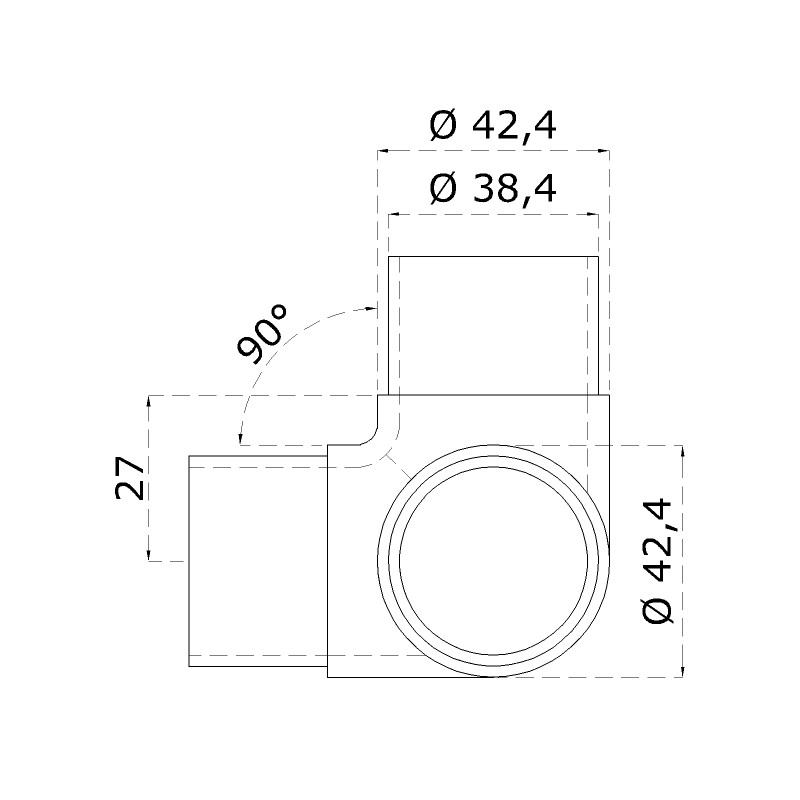 spojka - prechod 90° na trubku ø 42.4mm, brúsená nerez K320 /AISI304