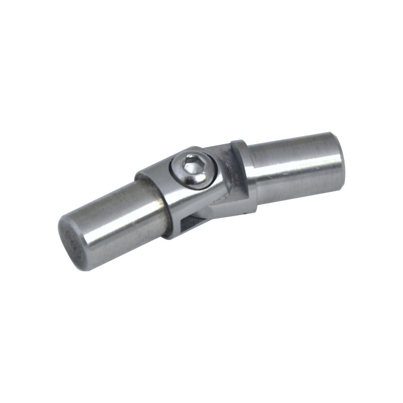 spoj nastaviteľný (0-100°) plný materiál, s kĺbom, na trubku ø 12mm, leštená nerez /AISI304