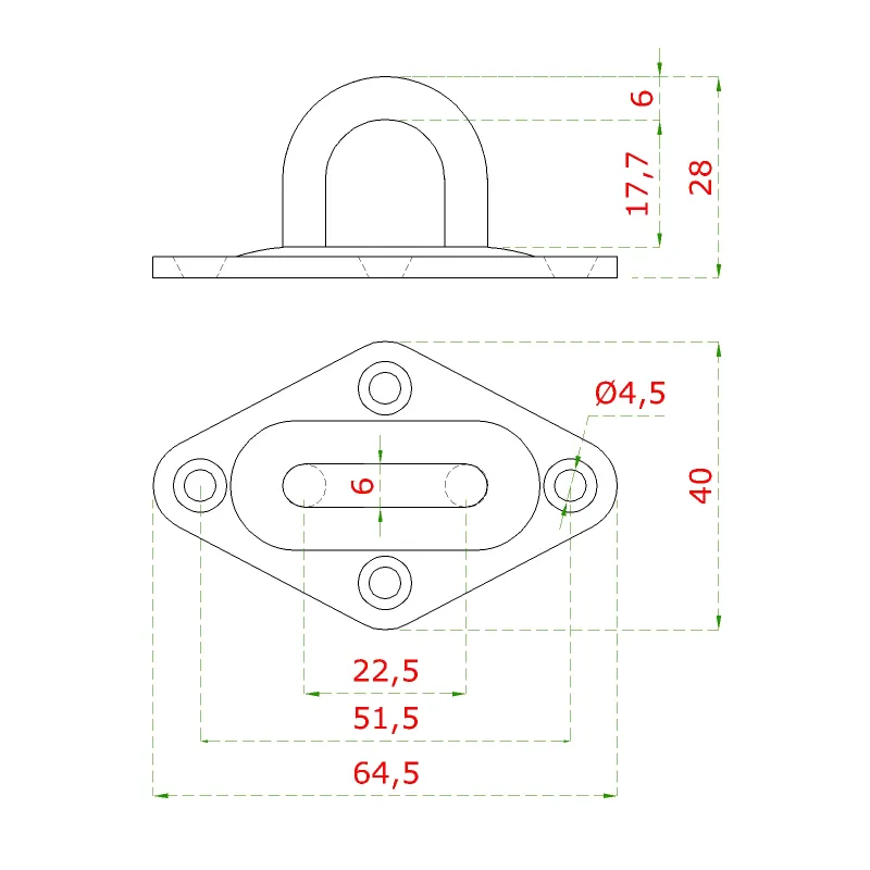 Nástenný úchyt lanka vzor diamant, obľúka 6 mm, brúsená AISI 304