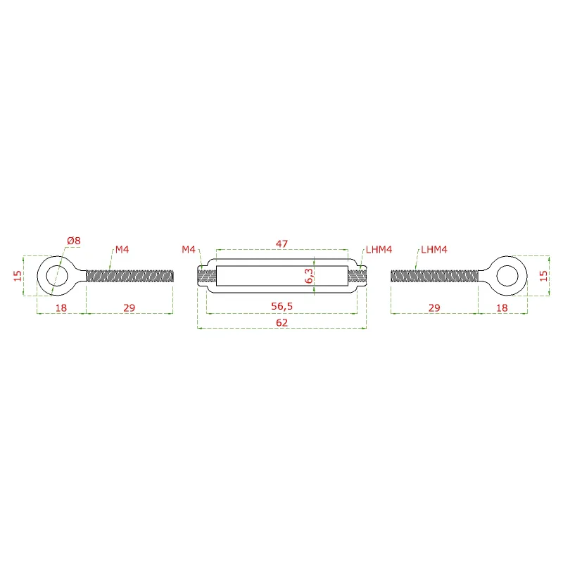 šponovák so závitom M4 a LH4, nerez AISI304