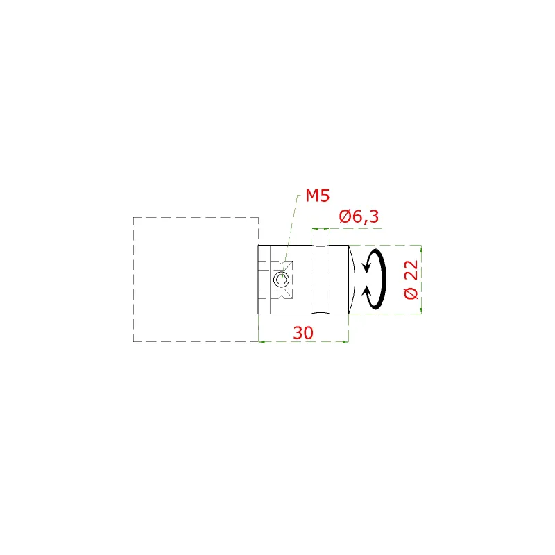 držiak lanka ø 5mm bez zaistenia plochý (30x22 mm), brúsená nerez K320 /AISI304