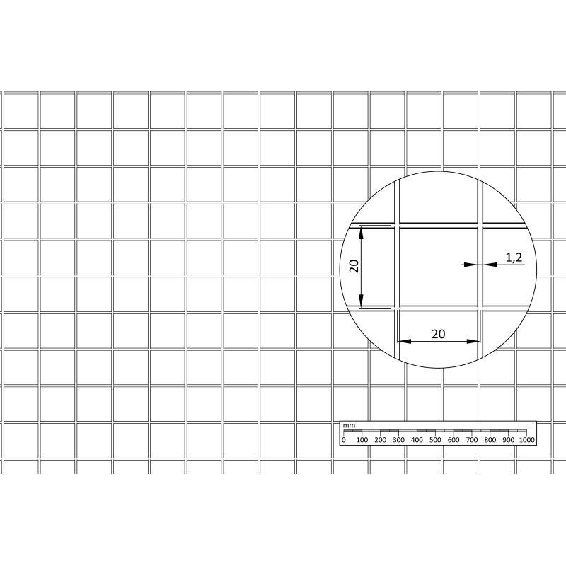 Zvárané sito, oko: 20 x 20 mm, hrúbka: 1,2 mm, AISI 304