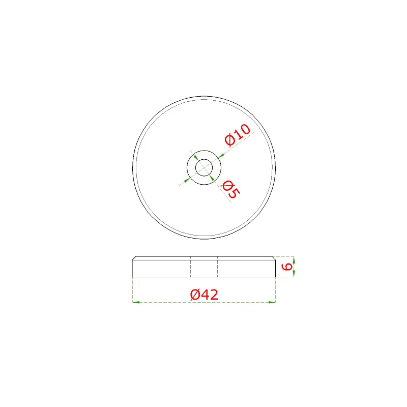 podložka spodná (ø 42x6mm, diera ø 10/5mm), brúsená nerez K320 /AISI304