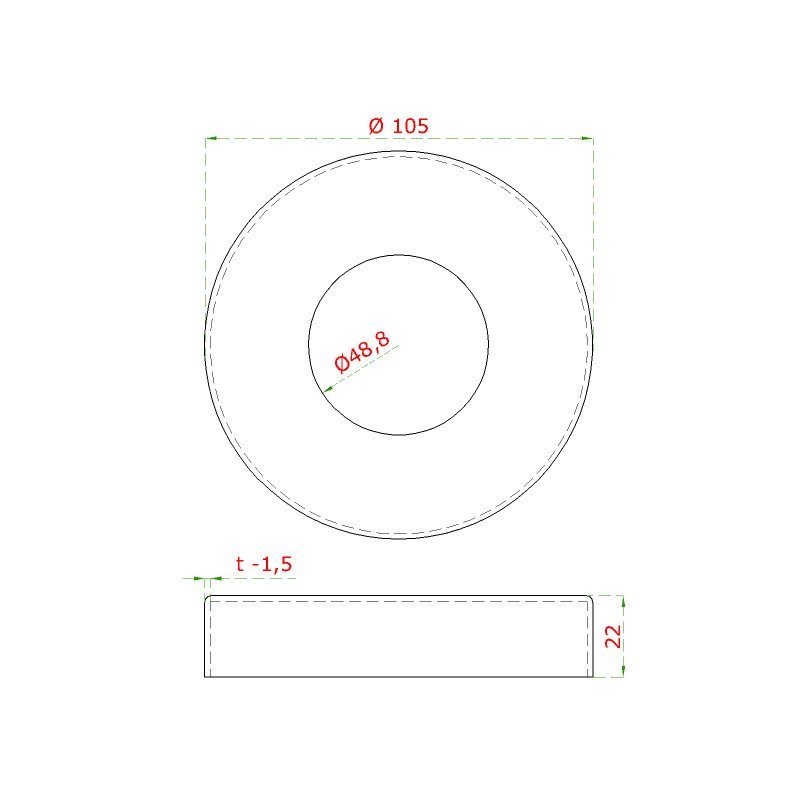 kryt príruby (ø 105/22mm) na trubku ø 48.3mm, brúsená nerez K320 /AISI304