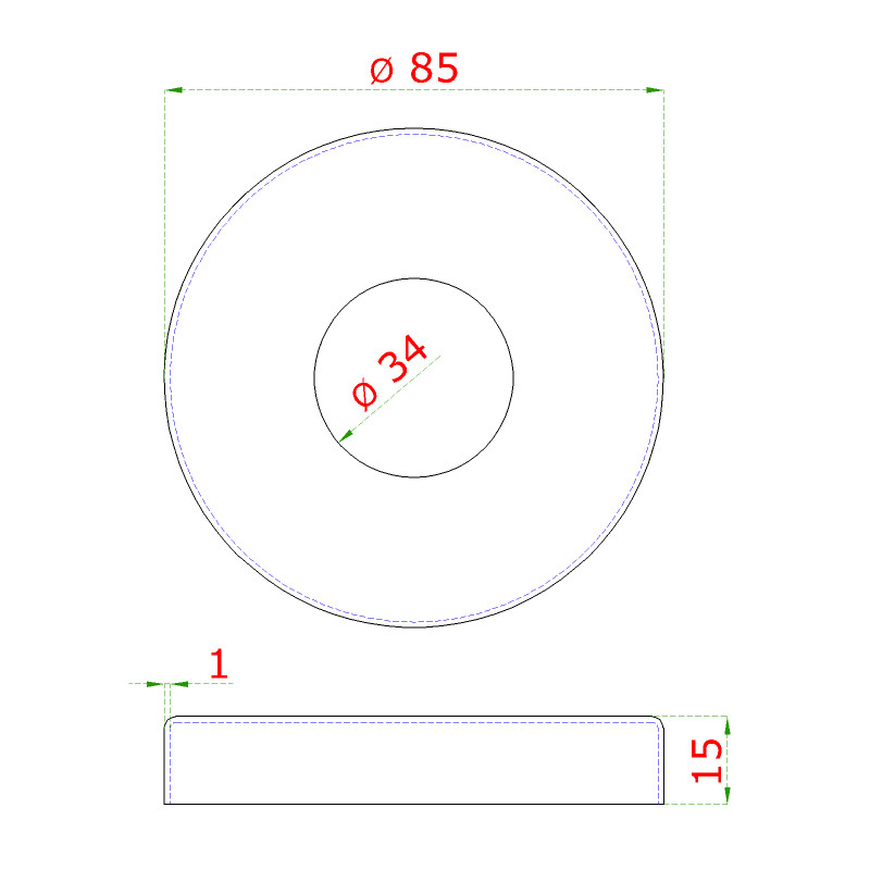 Kryt príruby (ø 85mm) na trubku ø 33.7mm (otvor ø 34mm), brúsená nerez K320 /AISI304
