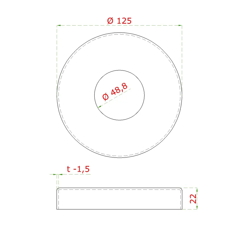 kryt príruby ( 125/22mm) na trubku 48.3mm, brúsená nerez K320 /AISI304