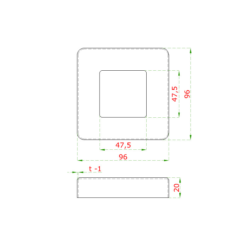 kryt príruby (96x96mm), otvor:47.5x47.5mm, brúsená nerez K320 /AISI304