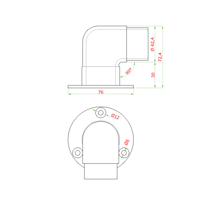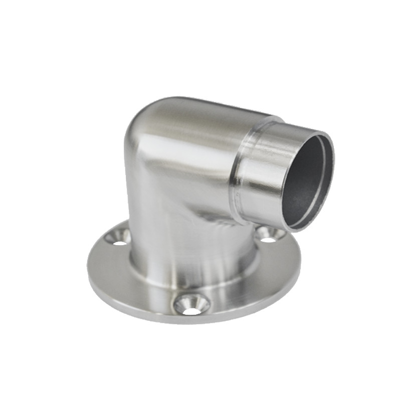 spojka rohová 90° na trubku ø 42.4mm s uchytením na stenu, brúsená nerez K320 /AISI304