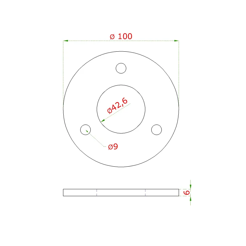 Kotviaca platňa (ø 100x6mm) na trubku ø 42.4mm (otvor ø 42.6mm), brúsená nerez K320 /AISI304