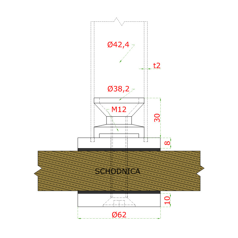 Držiak ø62mm pre spodné kotvenie stĺpika, AISI304