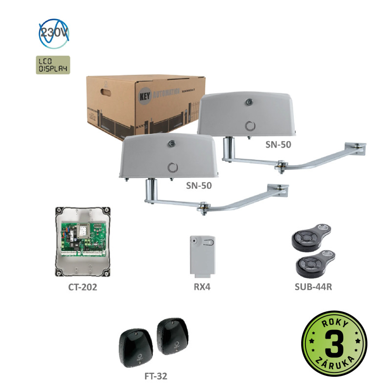 900KSN52KS - MEWAKIT3 je kompletné riešenie pre automatizáciu dvojkrídlových brán s dĺžkou krídla do 4 metrov. Ponúka spoľahlivosť, tichý chod a elegantný dizajn v kombinácii s jednoduchou montážou.