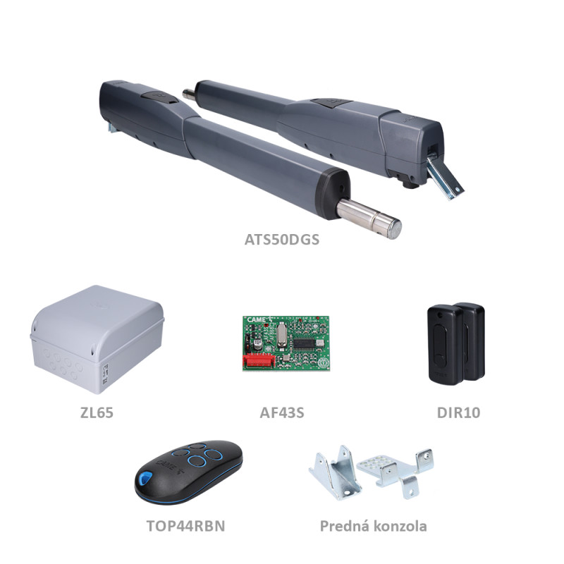 CAME ATS SAFE LONG 24V sada pre dvojkrídlovú bránu do 5m/krídlo, 2x ATS50DGS (24V, 80W, 3000N), 1x ZL65, 1x AF43S, 1x TOP44RBN, 1 pár DIR10