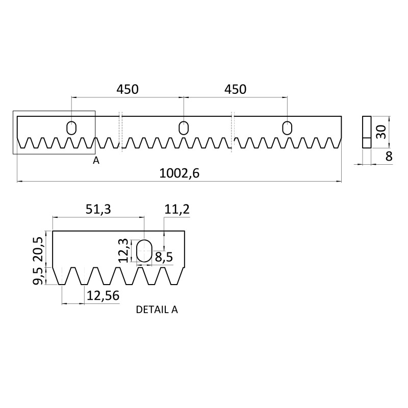 hrebeň kov 30x8mm, L-1000mm, M4, max do 1200kg, 3x úchyt+skrutky, pozinkovaný