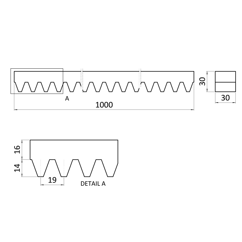 Hrebeň kov 30x30mm, L-1000mm, pre pohony s pastorkom M6, max do 5000kg, pozinkovaný, cena za kus