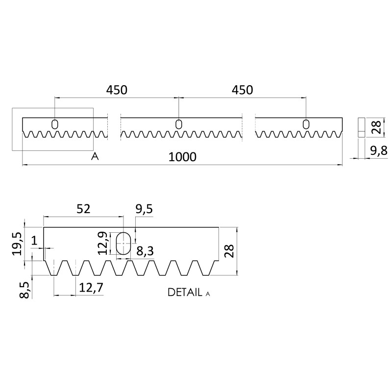 hrebeň INOX 30x10mm, L-1000mm, M4, max. do 1900kg, 3x úchyt+skrutky, nerezový
