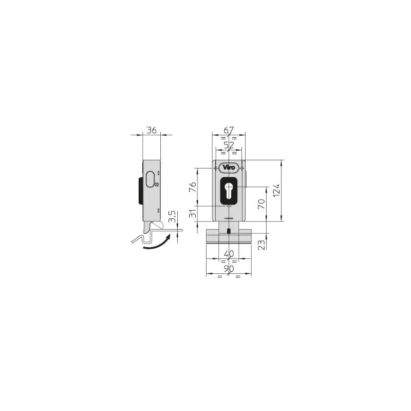 Elektrozámok VIRO 12V vertikálny pre krídlovú bránu nad 3m/krídlo