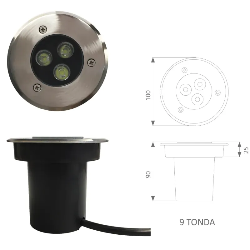 900TN103N Vonkajšie LED osvetlenie TONDA - zabudovateľné svetlo pre rezidenčné oblasti, hotely, kompletne vodotesné a odolné fi = 100mm, nerezová oceľ + plast