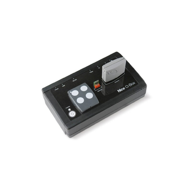0-Box sa zapojí na váš PC alebo palmtop PDA a umožňuje kontrolovať, pridať, vymazať, povoliť a zakázať kódy; programovať pamäť, typické funkcie a parametre prijímačov, vysielačov a iných ovládacích zariadení Nice.