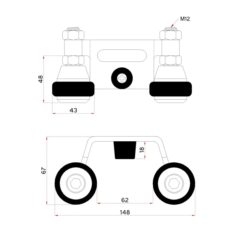 Horný doraz s vodiacimi gumovými kolieskami (60mm)
