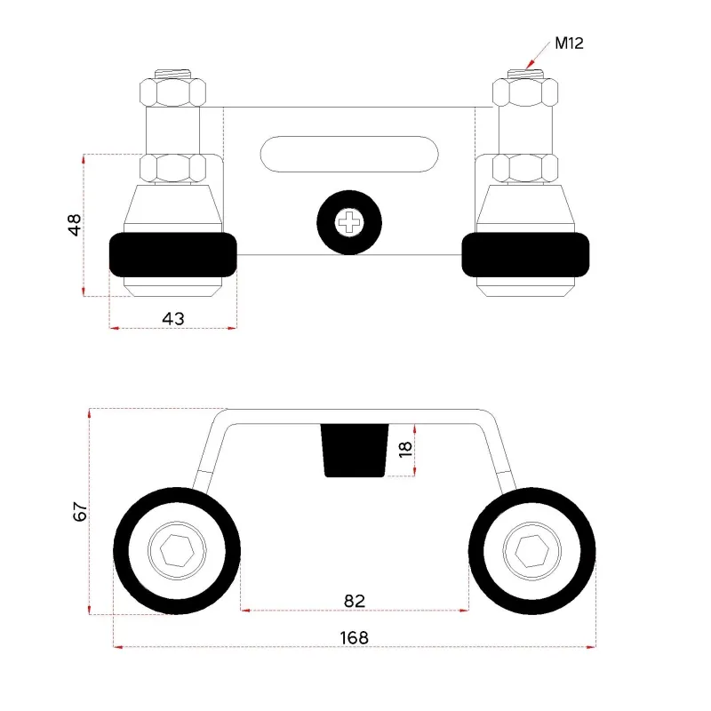 horný doraz s vodiacimi gumovými kolieskami (80mm)