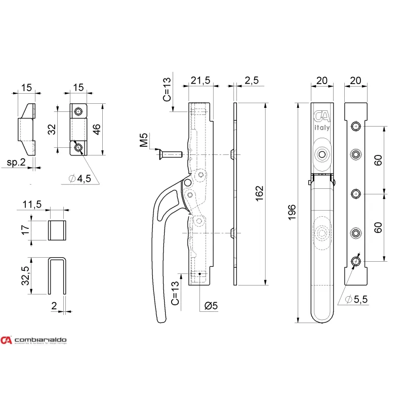 Uzatvárací pákový systém L-162mm pre riadiacu tyč 10x10mm