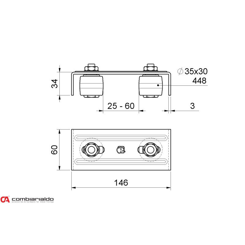 Platňa Combi Arialdo, 2 vodiace nylon. kolieska 35x30mm