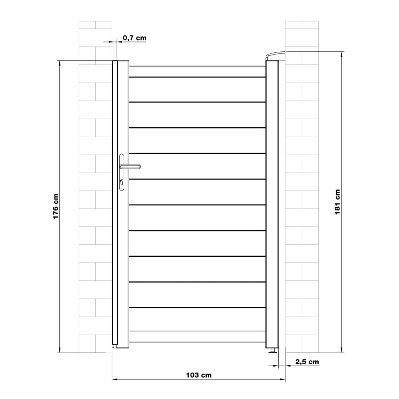 Plotová bránka je kľúčovou súčasťou každého oplotenia nehnuteľnosti či pozemku. Táto 173 cm vysoká hliníková bránka ponúka vďaka kvalitnému práškovému nástreku výnimočnú životnosť, je odolná, atraktívna a jej šírku môžete ľahko prispôsobiť existujúcemu oploteniu. Otváranie je riešené spoľahlivou kľučkou a zámkom s vložkou FAB.