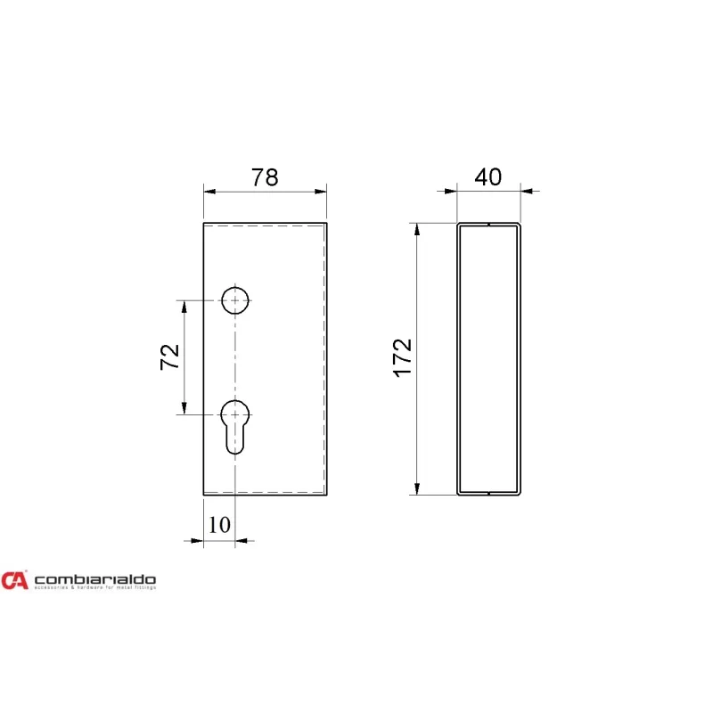 Kryt zámku od popredného talianského výrobcu Combi Arialdo. Povrchová úprava pozink. Použitie pre posuvné brány. Kryt sa navára na jockel 50mm - kombinácia so zámkom C351 a C353. Počet kusov v balení - 6.