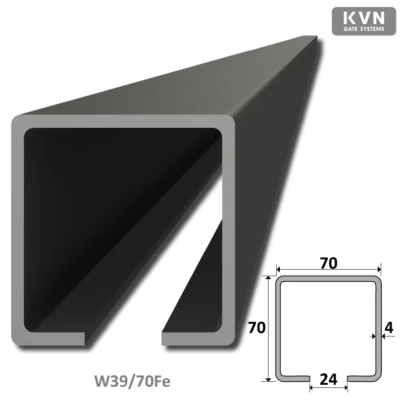 C profil 70x70x4mm čierný Fe pre samonosný systém posuvnej brány