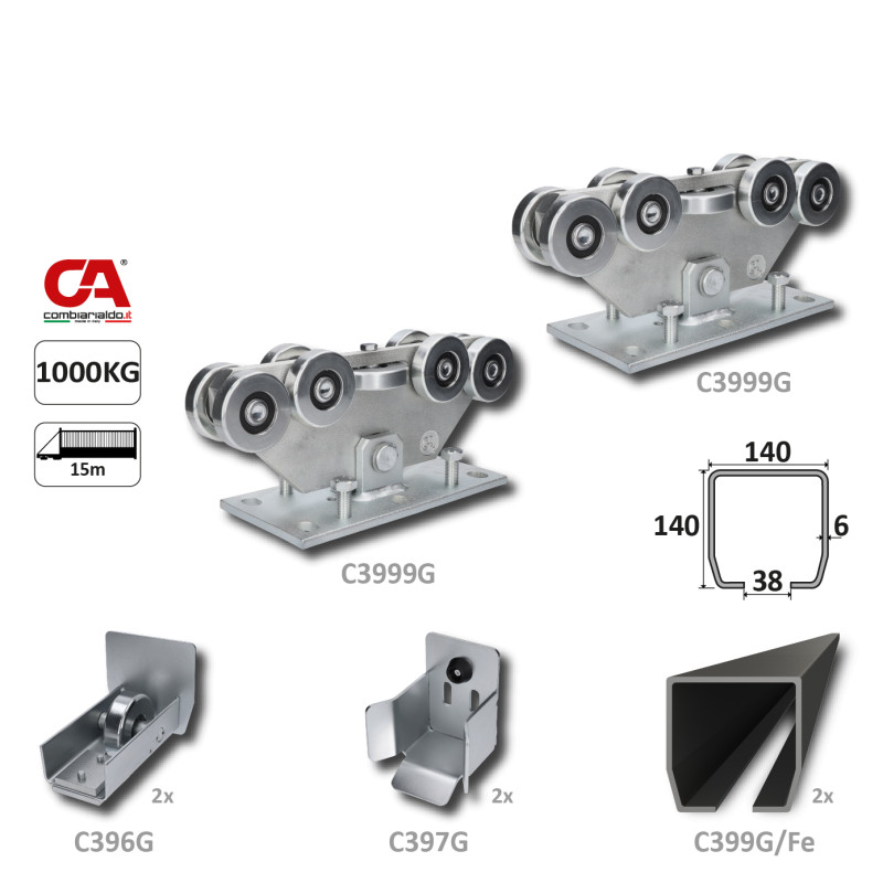 GRANDE-9 (140x140mm) samonosný systém pre posuvné brány do 1000kg/ otvor: 20m (C399G/Fe 2x6m čierny profil, C3999G 2ks, C396G 2ks, C397G 2ks), intenzívna prevádzka