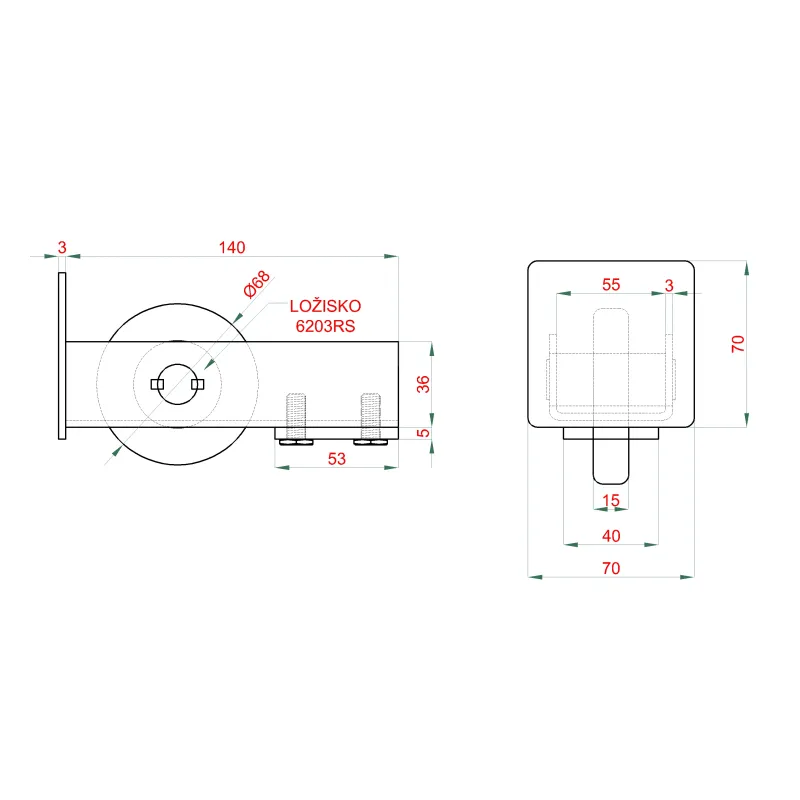 Samonosný systém 70x70x4mm posuvnej brány do 200kg/4,5m otvor (W39/70Zn 6m pozinkovaný profil, 1xW-SET70/F)