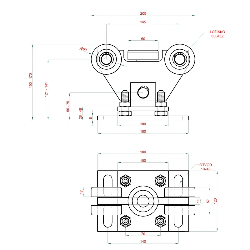 Samonosný systém pre posuvné brány do 200kg, pozinkovaný profil 70x70x4mm W39/70Zn 6m, 1 x W-SET70F