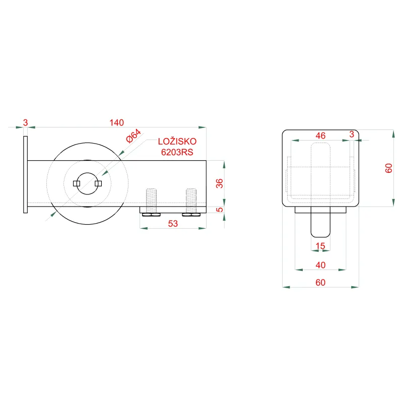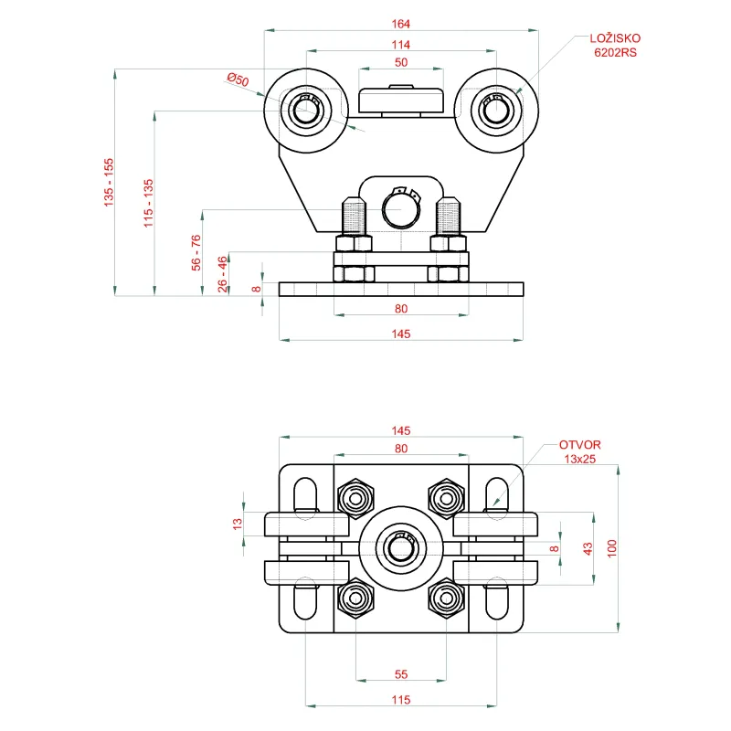 Samonosný systém 60x60x4mm posuvnej brány do 150kg/4m otvor (W39/60Fe 6m čierný profil, 1x W-SET60F2)