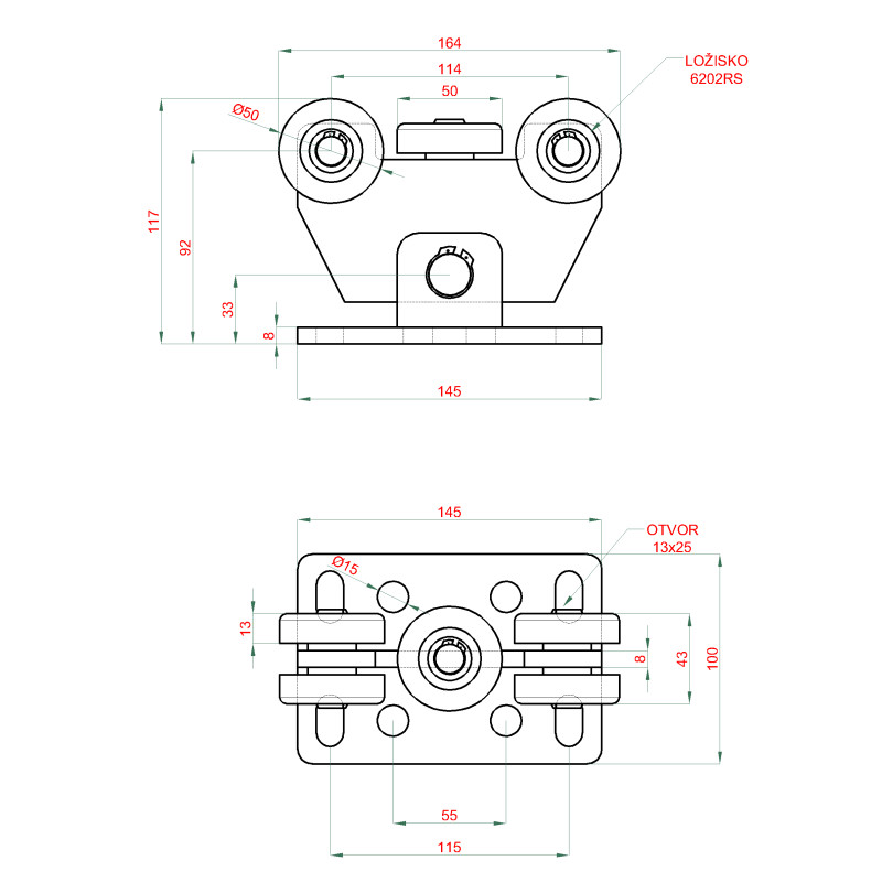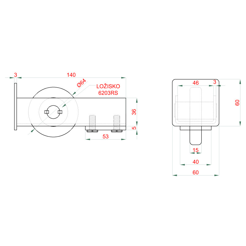 Samonosný systém 60x60x4mm posuvnej brány do 150kg/4m otvor (W39/60Fe 6m čierný profil, 1x W-SET60/F)