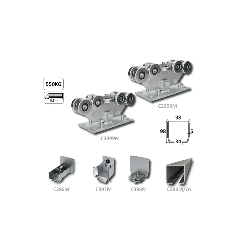 MEDIO-9 (98x98mm) samonosný systém pre posuvné brány do 500kg/ otvor: 8.5m (C399M/Zn 1x6m pozinkovaný profil, C3999M 2ks, C396M 1ks, C397M 1ks), intenzívna prevádzka