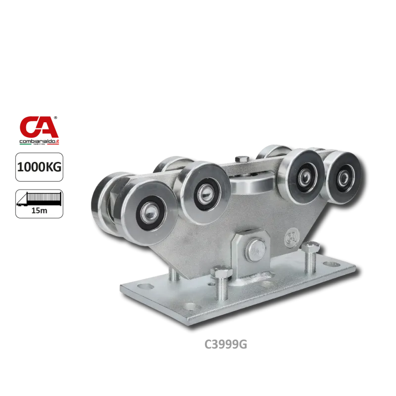 Samonosny systém vozíka od popredného talianského výrobcu Combi Arialdo. Povrchová úprava- pozink. Použitie pre posuvné brány. Kombinácia s kolajnicou C399G/Fe a C399G/Zn.