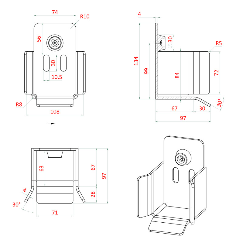 Set pre samonosný systém 70x70x4mm, 2x W35PR/F, 1x W37M, 1x W36/70, 1x W32/70