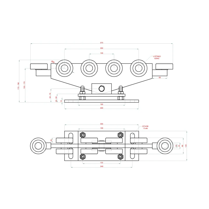 Vozík nastaviteľný pre C-profil 80x80x5mm, pozink, do 800kg