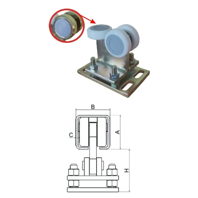 vozík regulovateľný pre profil 80x80x5mm, polyamidové kolieska
