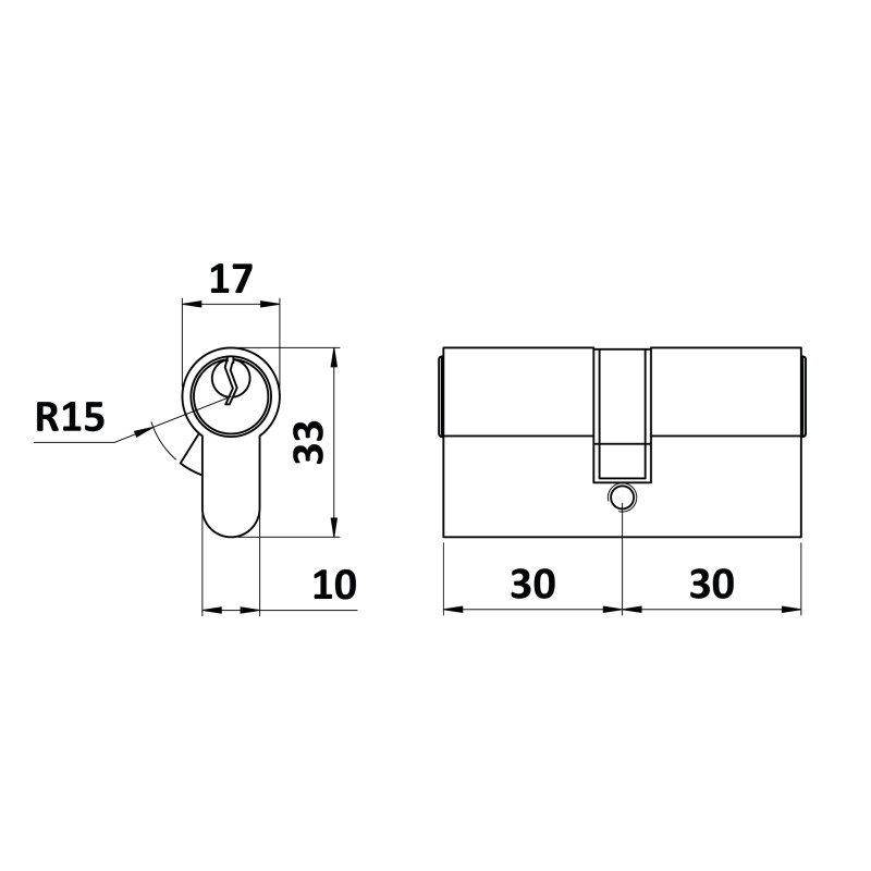 Cylindrická EURO vložka LOCINOX®, Súčasť balenia - 3 x kľúč.
