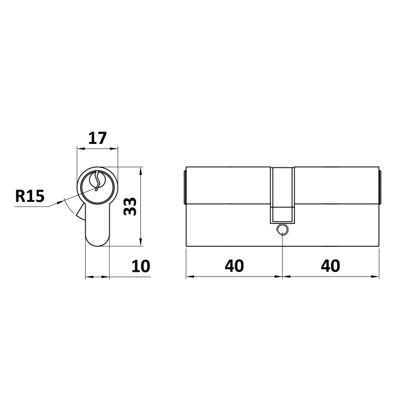 cylindrická vložka 40x40mm, mosadzná, 3 kľúče, skrutka M5x65mm