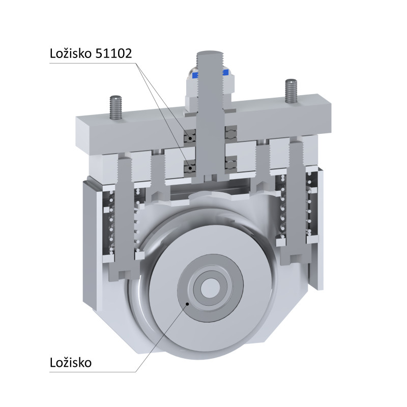 Nosné, otočné koliesko pre koľajovú bránu do oblúka.