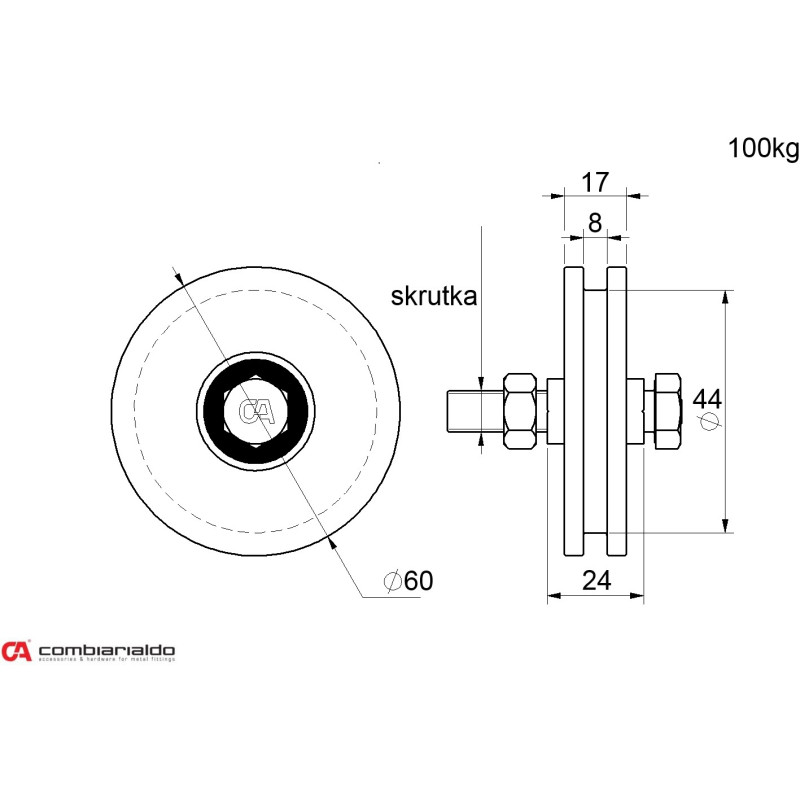 Vodiace koliesko od popredného talianského výrobcu Combi Arialdo. Povrchová úprava- pozink. Použitie pre posuvné brány k profilu T.
