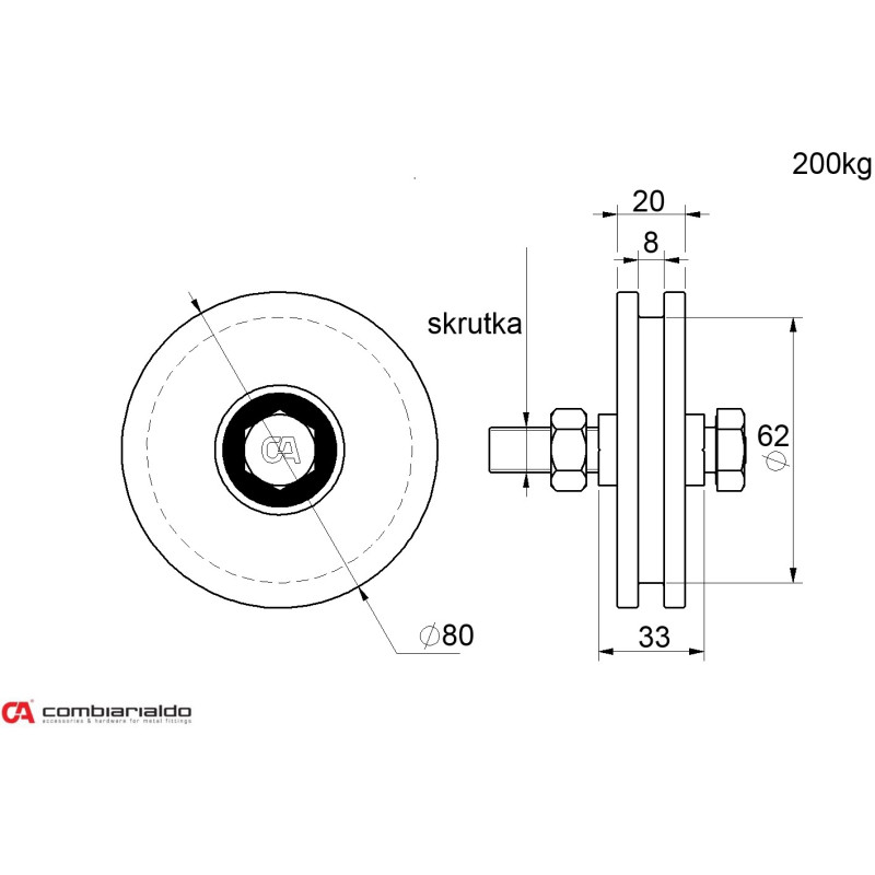Vodiace koliesko od popredného talianského výrobcu Combi Arialdo. Povrchová úprava- pozink. Použitie pre posuvné brány k profilu T.