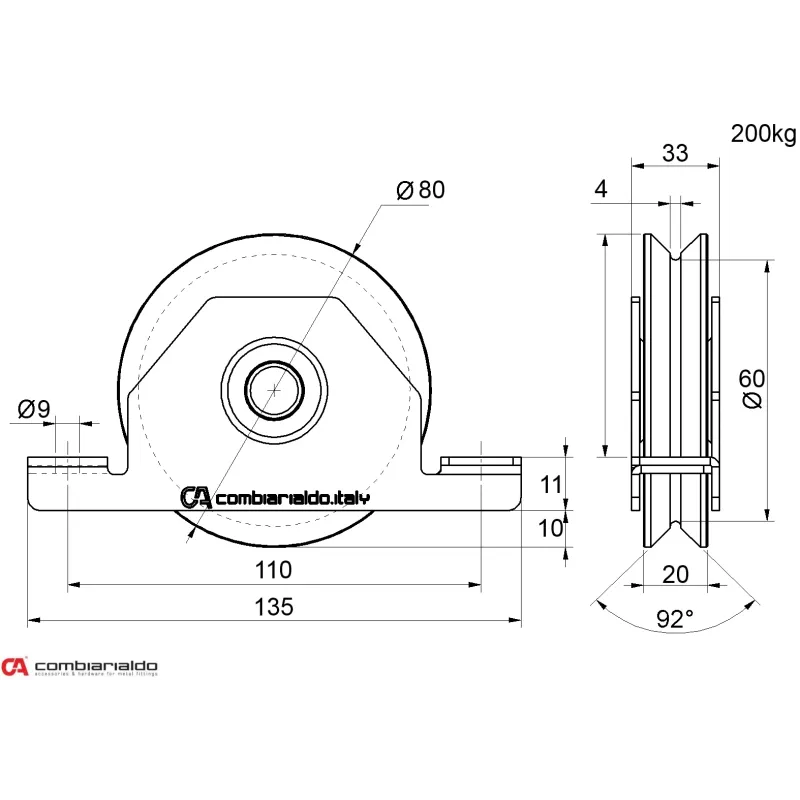 Koliesko od popredného talianského výrobcu Combi Arialdo. Povrchová úprava- pozink. Použitie pre posuvné brány.