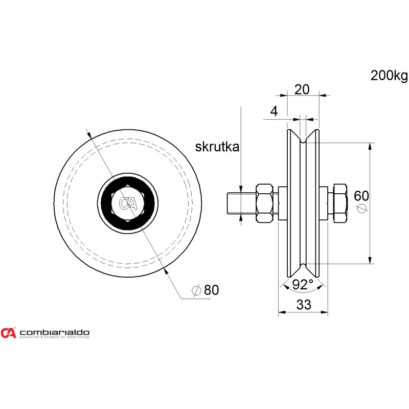 Vodiace koliesko ø 80mm jednoložiskové Combi Arialdo, V profil, nosnosť 200kg