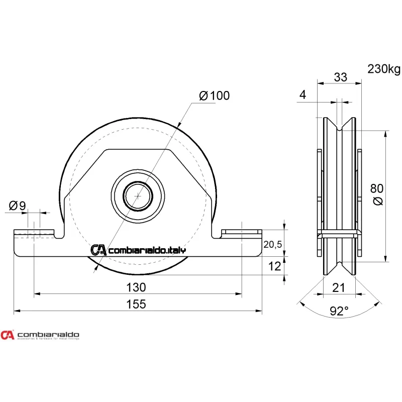 Koliesko od popredného talianského výrobcu Combi Arialdo. Povrchová úprava- pozink. Použitie pre posuvné brány.