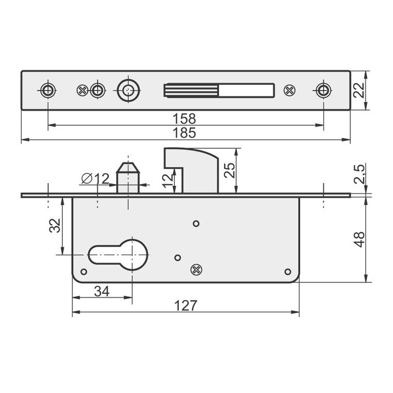 Hákový zámok s bolcom na posuvnú bránu, 50mm, bez otvoru na kľučku