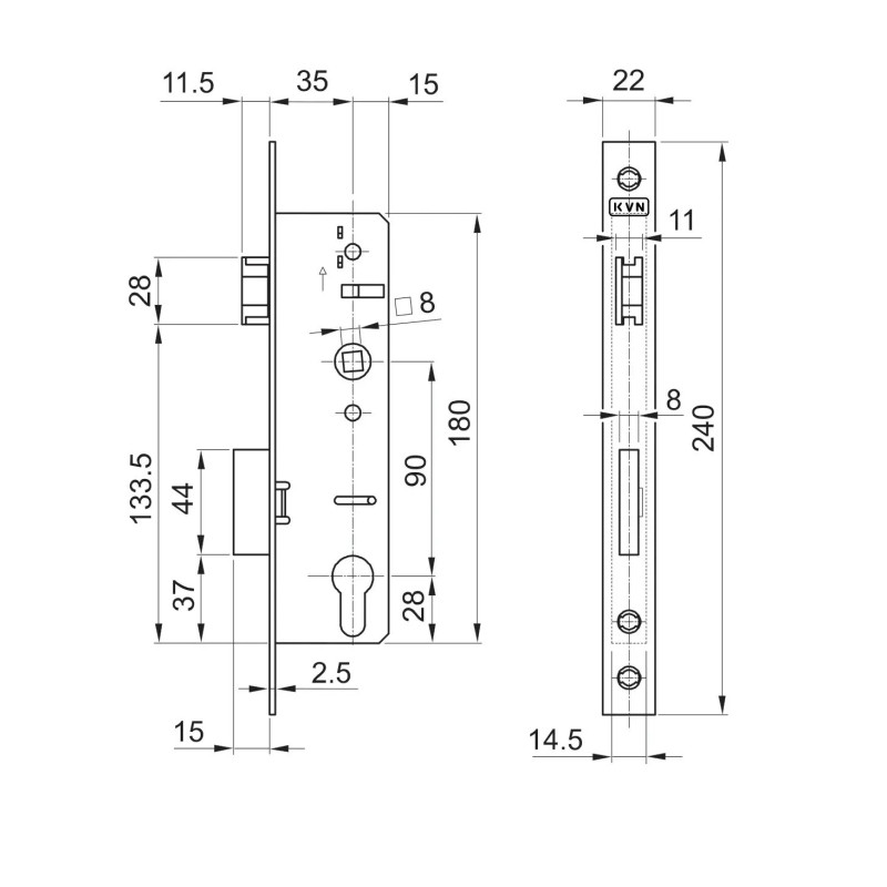 Zámok vložkový, zápust 50mm, rozteč 90mm, poniklovaná predná lišta